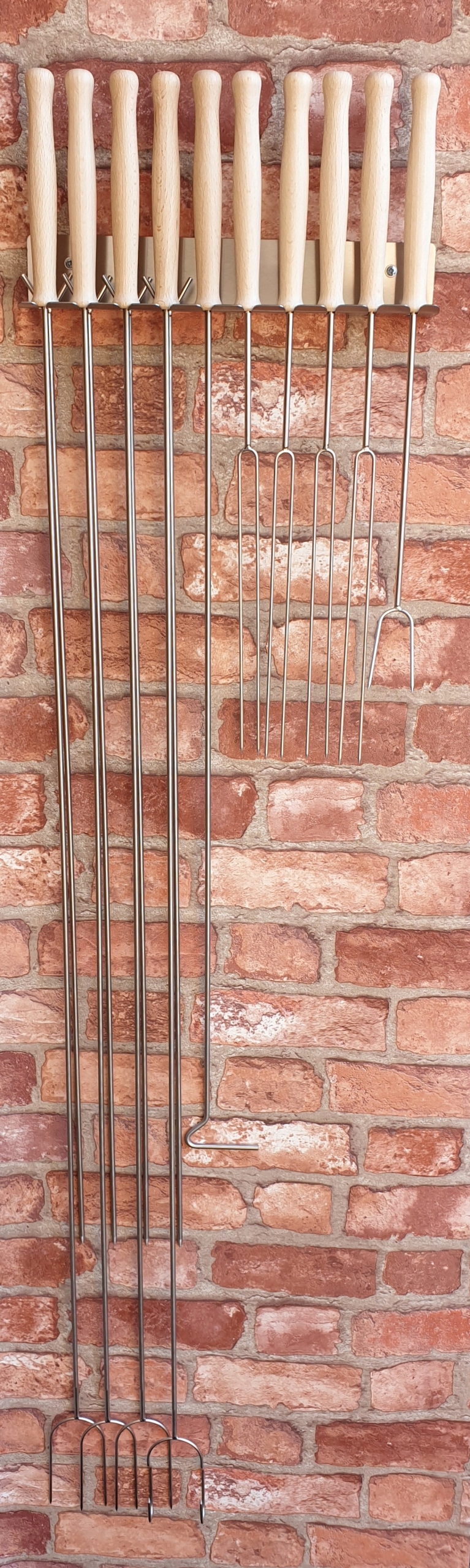 Аукціон набір - 6 вилок з нержавіючої сталі довжиною 100 см та вішалка з нержавіючої сталі