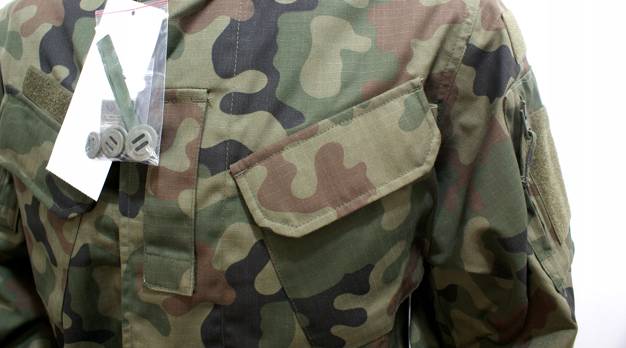 Липучки на рукавах і липучки для прапорів. Спинка пошита внахлест.