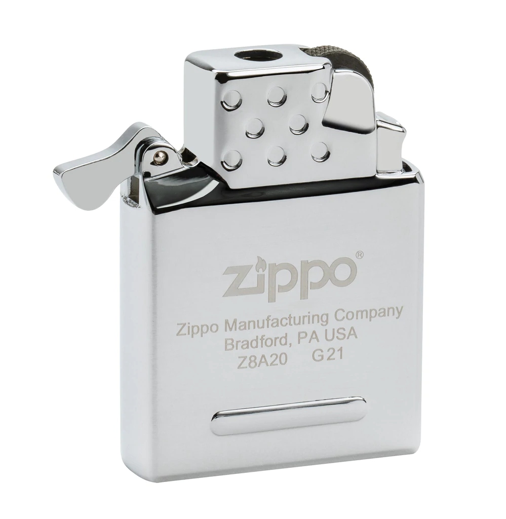 Оригінальна бутанова заправка для запальнички Zippo з жовтим полум'ям, що активується іскрою від каменю. Температура полум'я 760 C. Вставка дозволяє займатися до 125,5 секунд за одну заправку при висоті полум'я 2,5 см. Виробник подбав про те, щоб картридж з бутаном також виробляв клацання, характерне для запальничок Zippo. Нова колекція заправок для запальничок Zippo підходить до будь-якого типового чохла Zippo (не підходить для чохлів Slim, Armor або 1935 Replica).