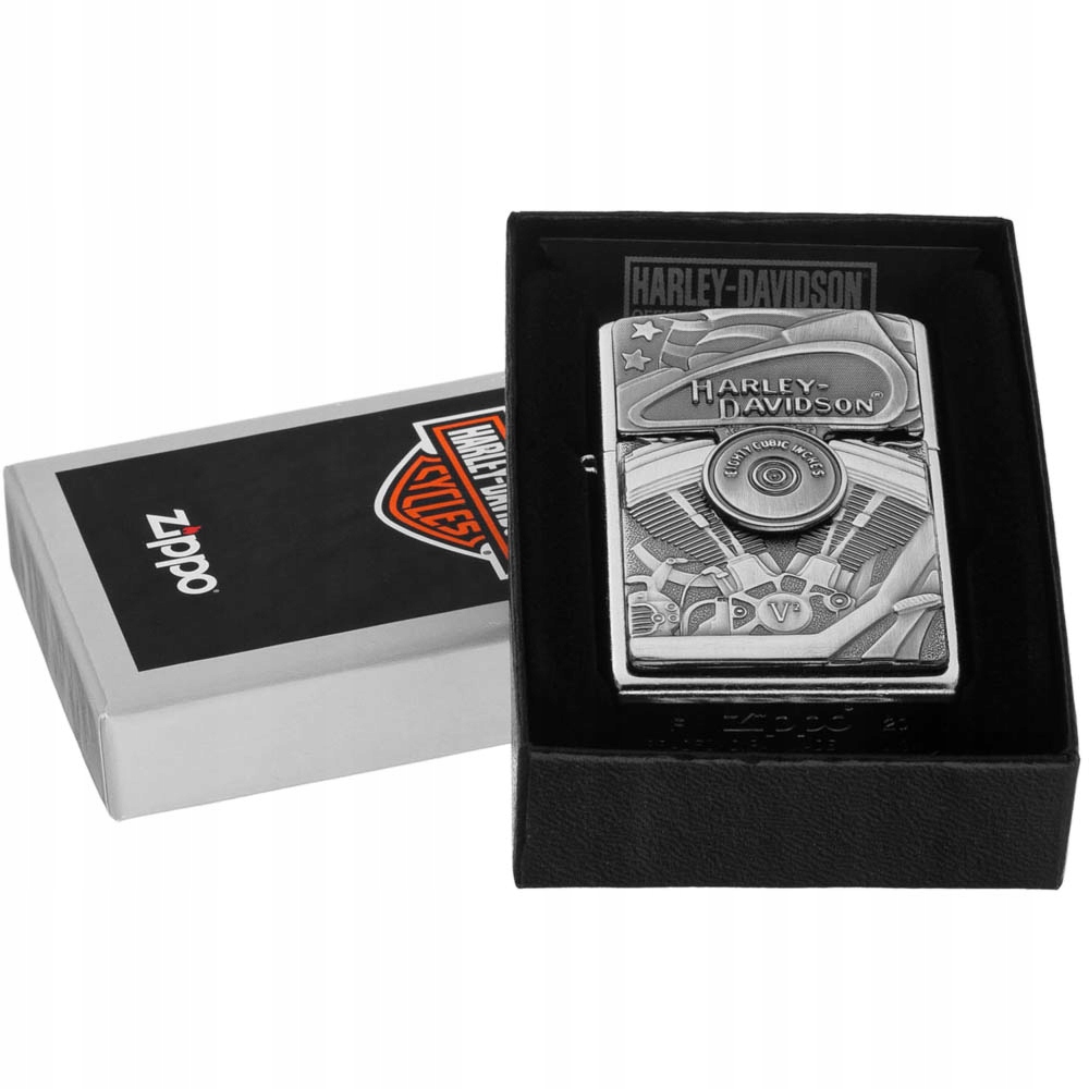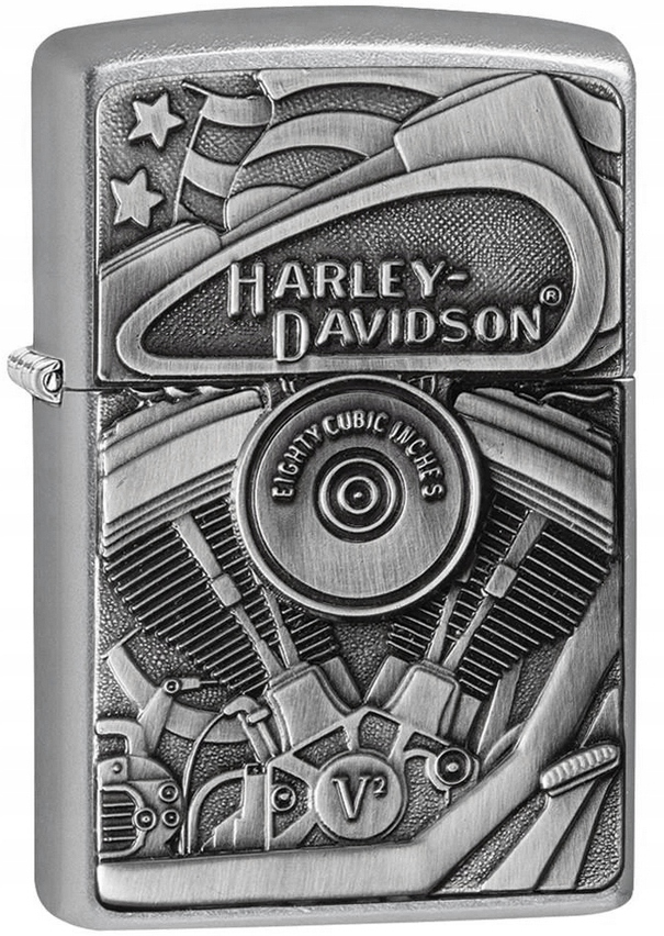 Одна з кількох легких моделей, доступних для ентузіастів бренду Harley-Davidson і любителів мотоциклів. Модель 29266 Harley-Davidson Motor Flag Emblem - це класична запальничка, передня частина якої прикрашена масивною тривимірною емблемою із зображенням напису Harley-Davidson і двигуна на тлі прапора США. Відкривши запальничку, ви також можете побачити американського білоголового орлана, який є національним символом США.
