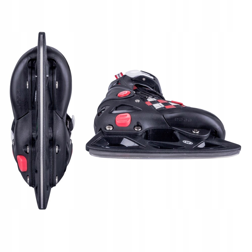 Роликові ковзани WORKER 2in1 Denel та роликові ковзани - це сучасні ковзани та ролики ковзани в одному, виконані в стилі ретро. Продукт створений для тих, хто цінує функціональні практичні рішення. Роликові ковзани оснащені 2 парами коліс, розташованих у 2 ряди, що гарантує високу стабільність їзди. Гальмо, розташоване в передній частині роликового ковзана, вимагає нетрадиційної техніки гальмування. Коли настане зима, раму з колесами можна легко замінити полозом, щоб насолоджуватися катанням. Функція AdjusTouch дозволяє регулювати розмір за допомогою кнопки, розташованої збоку ковзанів - завдяки цьому ковзани ростуть разом з користувачем і можуть використовуватися багато років!
