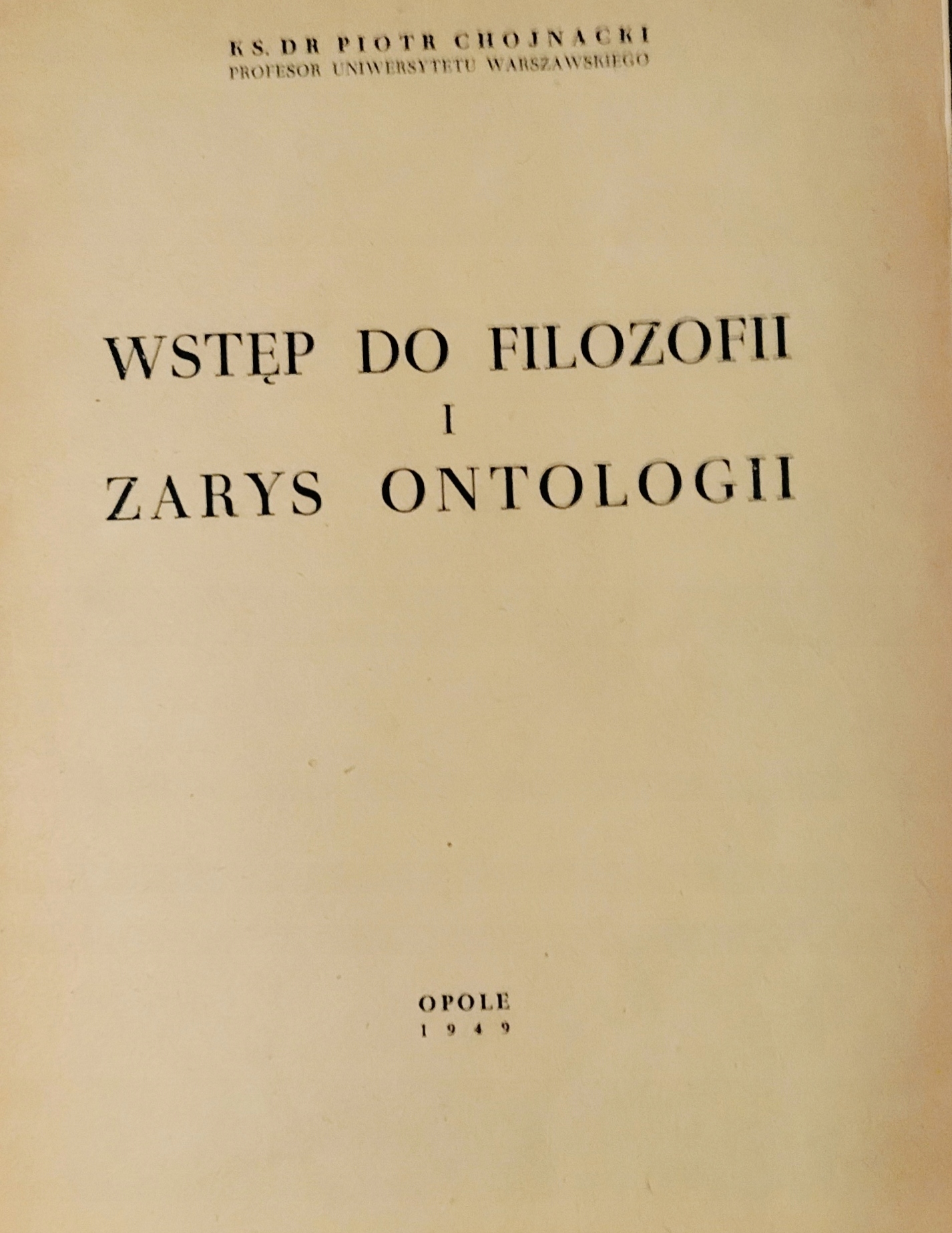 WSTĘP DO FILOZOFII I ZARYS ONTOLOGII - KS. DR PIOTR CHOJNACKI 1949