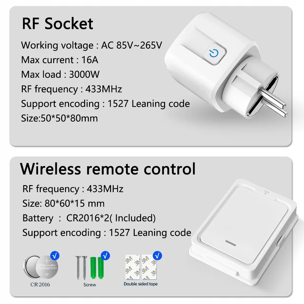 1. Розетка використовує сигнал RF433 МГц і використовується.