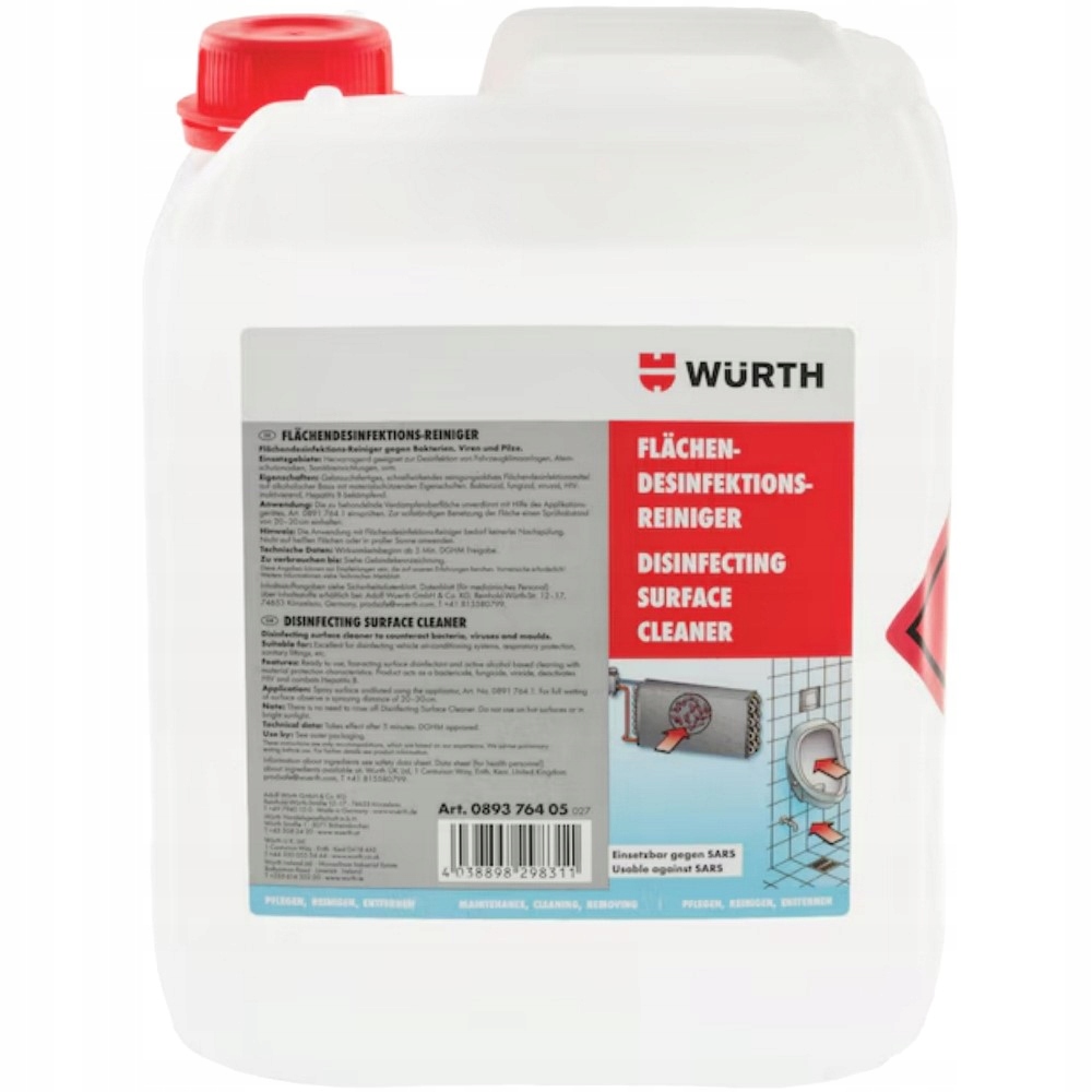 Würth Flächendesinfektionsreiniger 5L - арт. 089376405 - товар з німецької дистрибуції - немає польського опису!