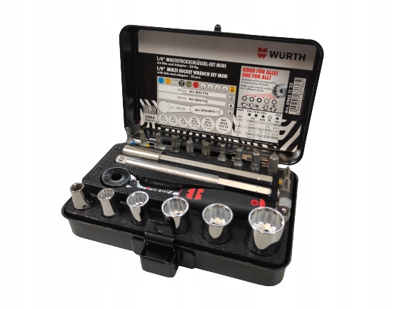 Просматривая «Wurth Zestaw kluczy nasadowych z grzechotką 1/4" mini, 23 części (09651123)», вы можете быть уверены, что данный товар из каталога «[rubrica_name]» будет доставлен из Польши и проверен на целостность. В цене товара, указанной на сайте, учтена доставка из Польши. Внимание!!! Товары для Евросоюза, согласно законодательству стран Евросоюза, могут отличаться упаковкой или наполнением.