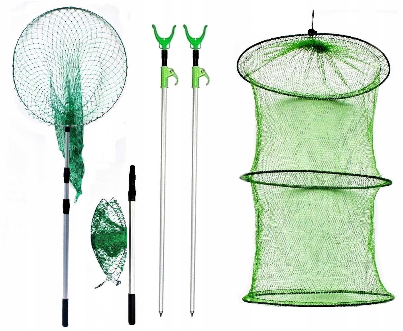 телескопічна посадкова сітка - 200 см. + Сітка для зберігання риб - три диски. Після розгортання вилки ми можемо встановити сирени укусу.