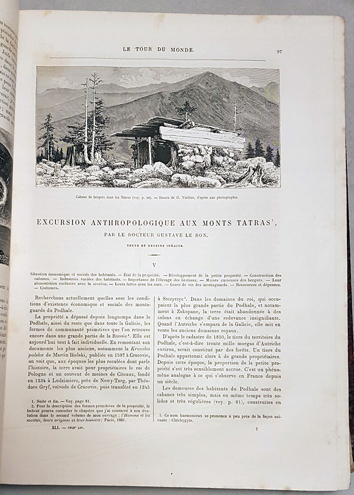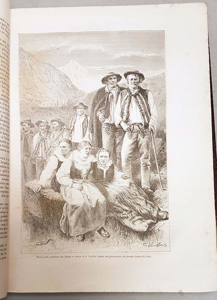 Опис подорожі в Татри, яку Ле Бон здійснив у 1879 році, за свідченнями старожилів Закопаного, він був першим французом у цьому містіі в Підгалі. Окрім надзвичайно цікавого тексту, увагу привертають чарівні гравюри на дереві (кілька десятків) за фотографіями Ле Бона та велика карта Татр. Woeród 6 великих,цілі сторінки. гравюри [16х24 см] і 14 менших містять мальовничі панорами Татр, Закопаного, Татрських озер, портрети горян та інших жителів.