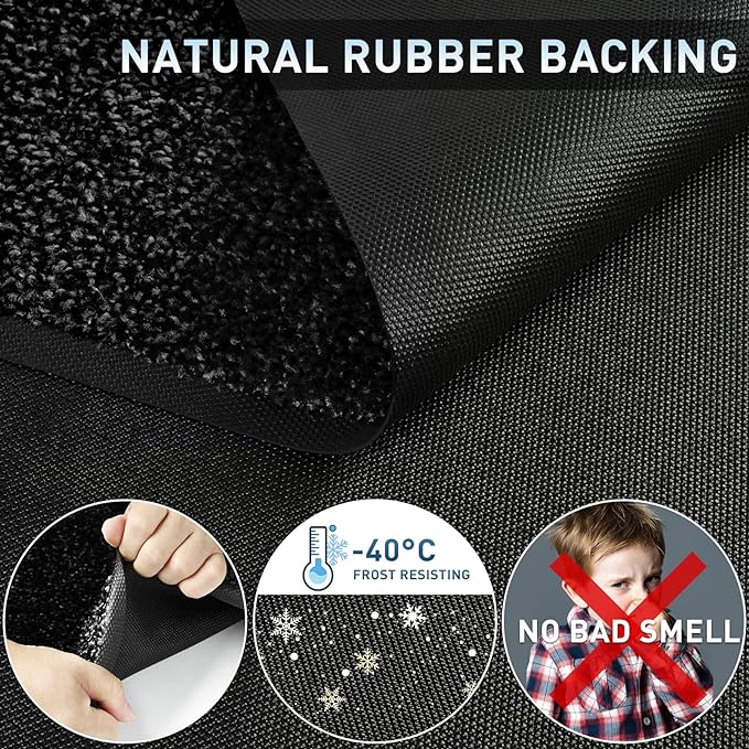 - СУПЕР ПОГЛИНАЮЧИЙ І ПРОТИ КЛИЗКИЙ: цей поглинаючий вхідний килимок вбирає вологу, як губка, зберігаючи територію чистою та сухою в дощові дні. Більше ніяких калюж і слизьких під’їздів. Гумове дно утримує килимок у правильному положенні та запобігає його ковзанню.