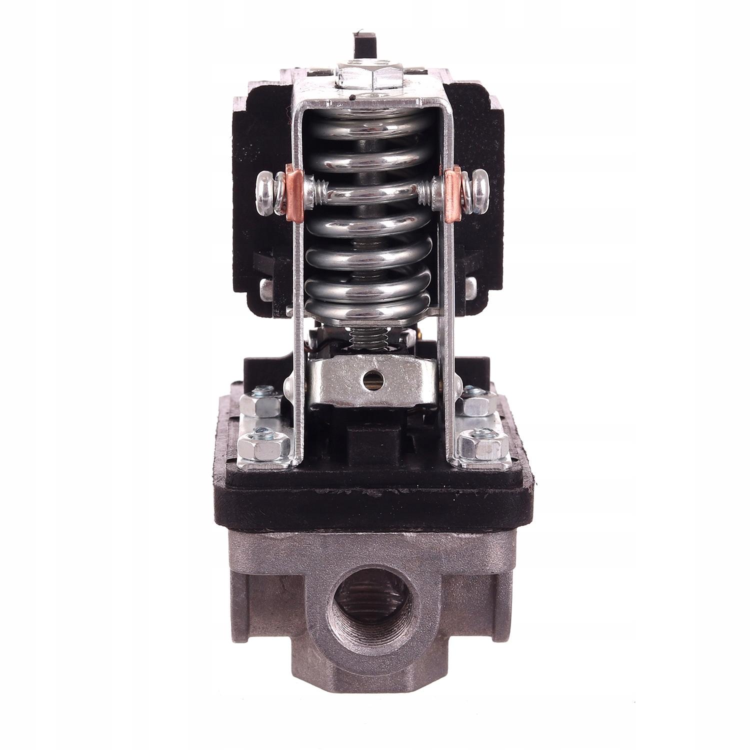 Вимикач тиску, реле тиску 230В для всіх компресорів з двигунами 230В. З'єднувальна різьба 1/4" і шлангове з'єднання 6 мм або різьба 1/8". (гайка) дозволяє підключати невеликі компресори, зазвичай o об'ємом балонів 24 і 50 л. Має можливість регулювати тиск увімкнення та вимкнення.