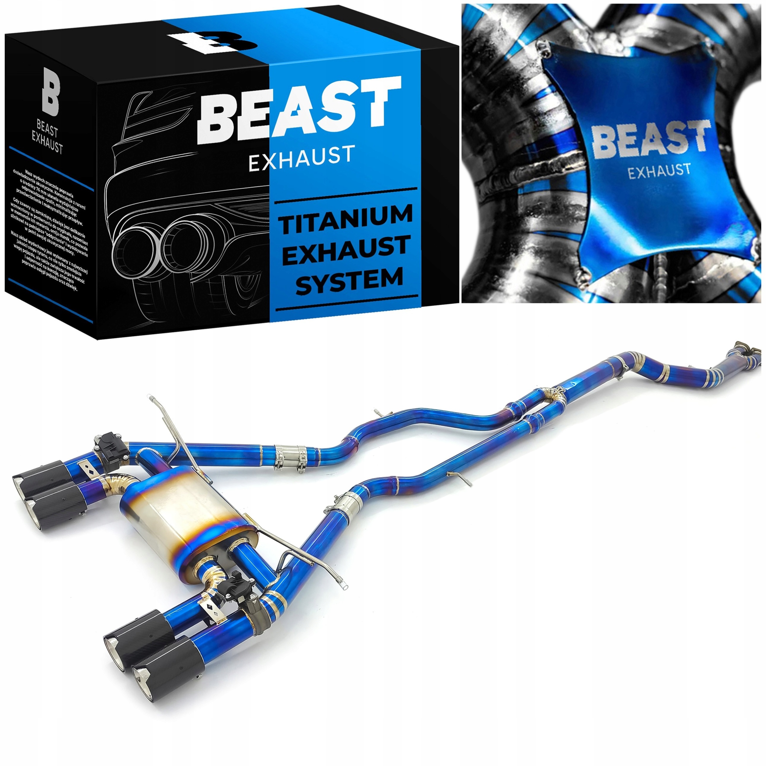 Титанова вихлопна система Beast Exhaust™ значно покращує продуктивність автомобіля з такими перевагами, як покращена динаміка завдяки зменшенню ваги, що забезпечує швидше прискорення, краще гальмування та маневреність. Оптимізація потоку вихлопних газів збільшує потужність і крутний момент, що робить водіння більш чуйним, а також може вплинути на ефективність палива.