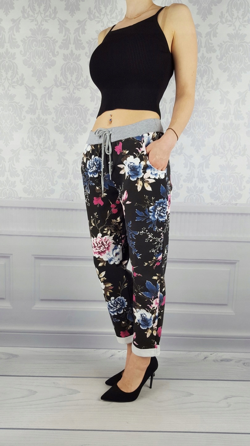 WYGODNE - SPODNIE - DRESOWE - KWIATY - BAWEŁNIANE