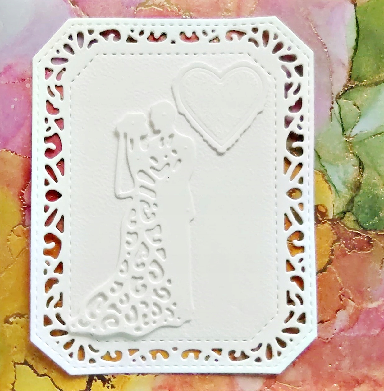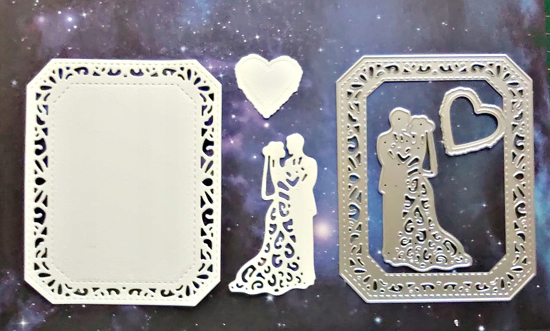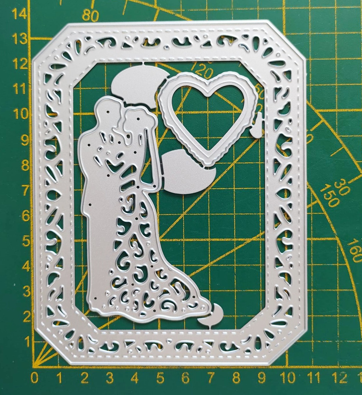 Вирізка, ажурна рамка + наречений і наречена + серце