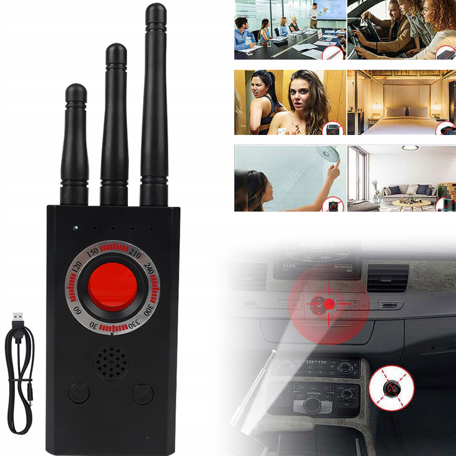 WYKRYWACZ PODSŁUCHÓW I KAMER GSM GPS UKRYTYCH LOKALIZATORÓW DETEKTOR WIFI