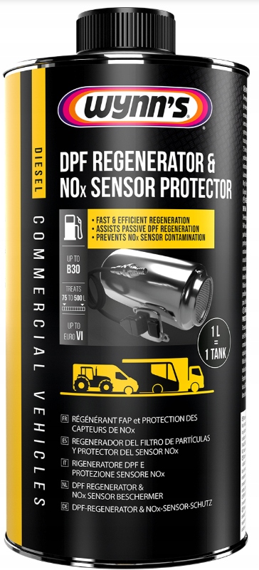 Регенератор DPF і протектор датчика NOx розроблено для очищення сажових фільтрів і зменшення викидів сажі в усіх дизельних двигунах. Крім того, він захищає датчик NOx від забруднення.