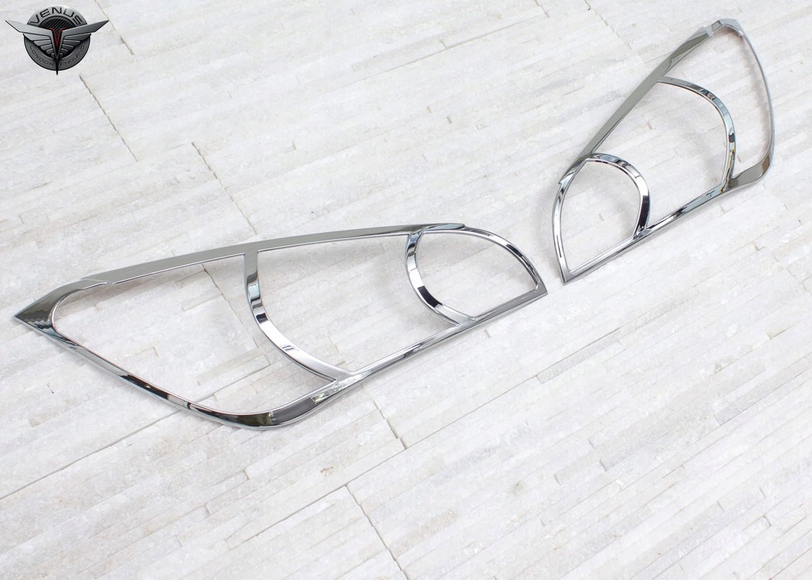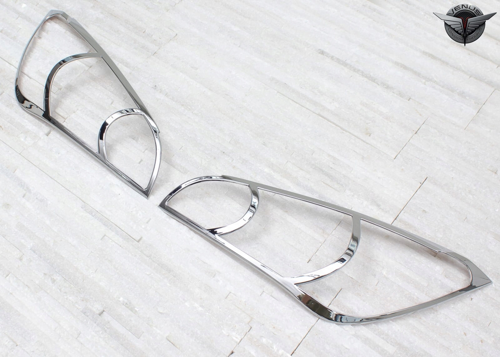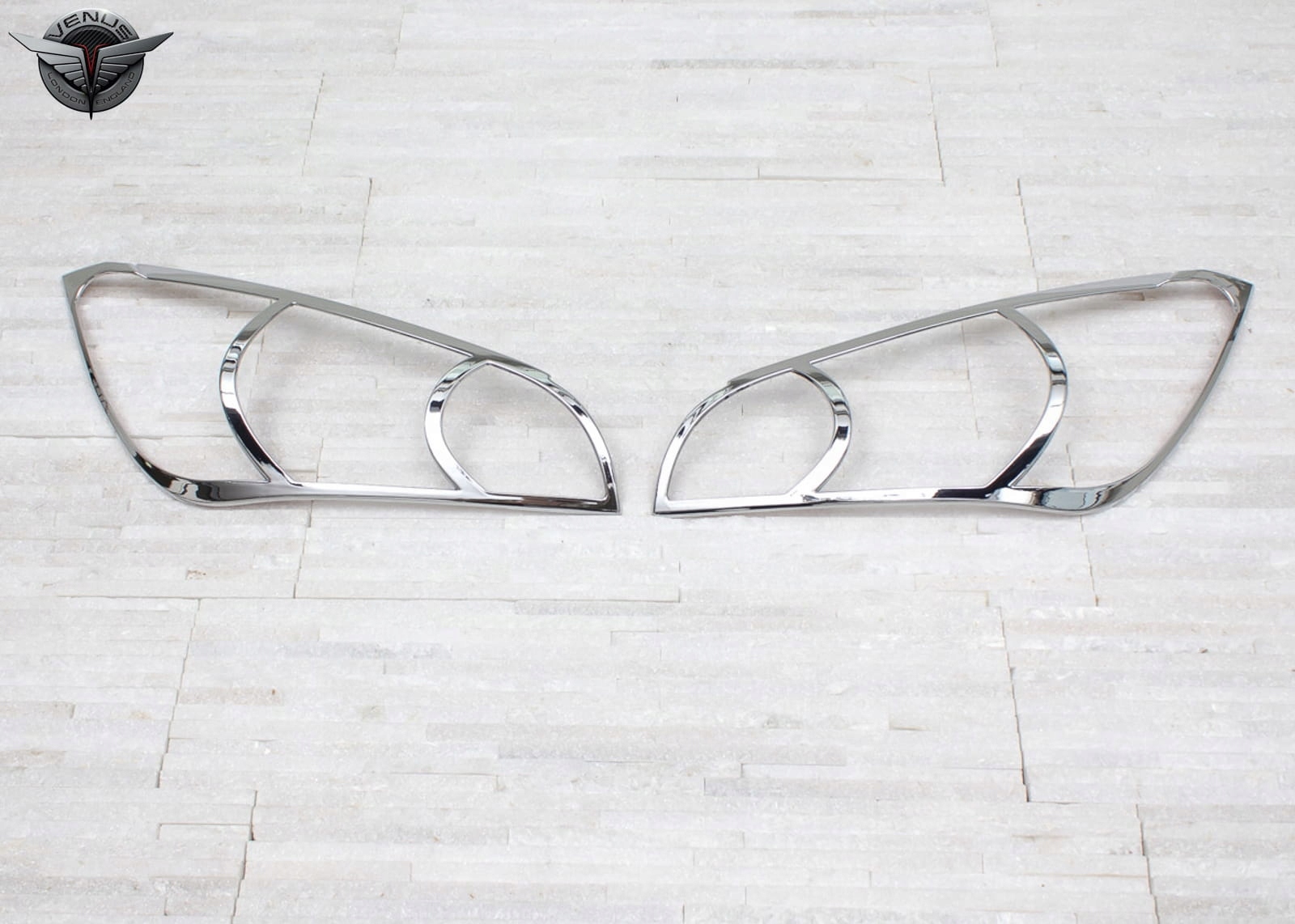 Виріб виготовлено з високоякісного хромованого ABS-пластику. У комплект входить набір з двох накладок на фари.