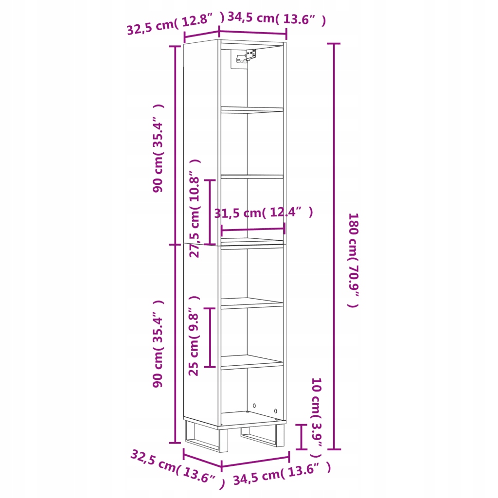 - Розміри тумби: 34,5 x 32,5 x 90 см (Ш x Г x В)
