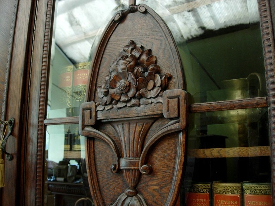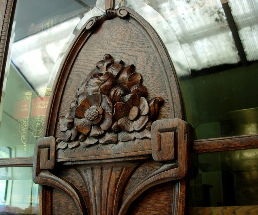 Бібліотека має гарну форму, і все це прикрашено великою майстерністю різьби по дереву.