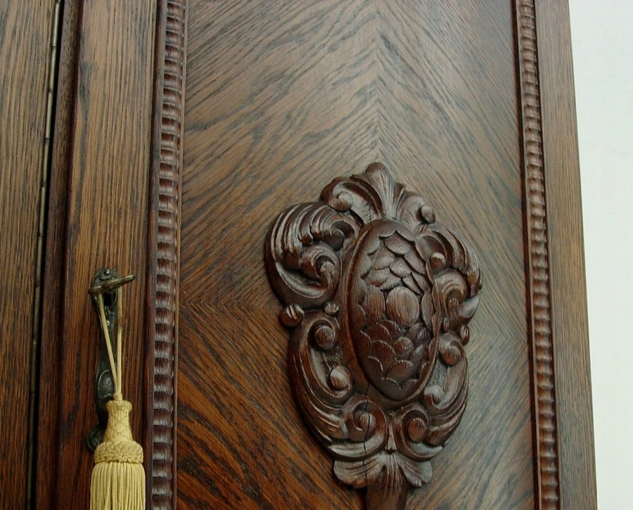 Скляні дверцята зі скошеним склом, що робить все дуже вишуканим і благородним.