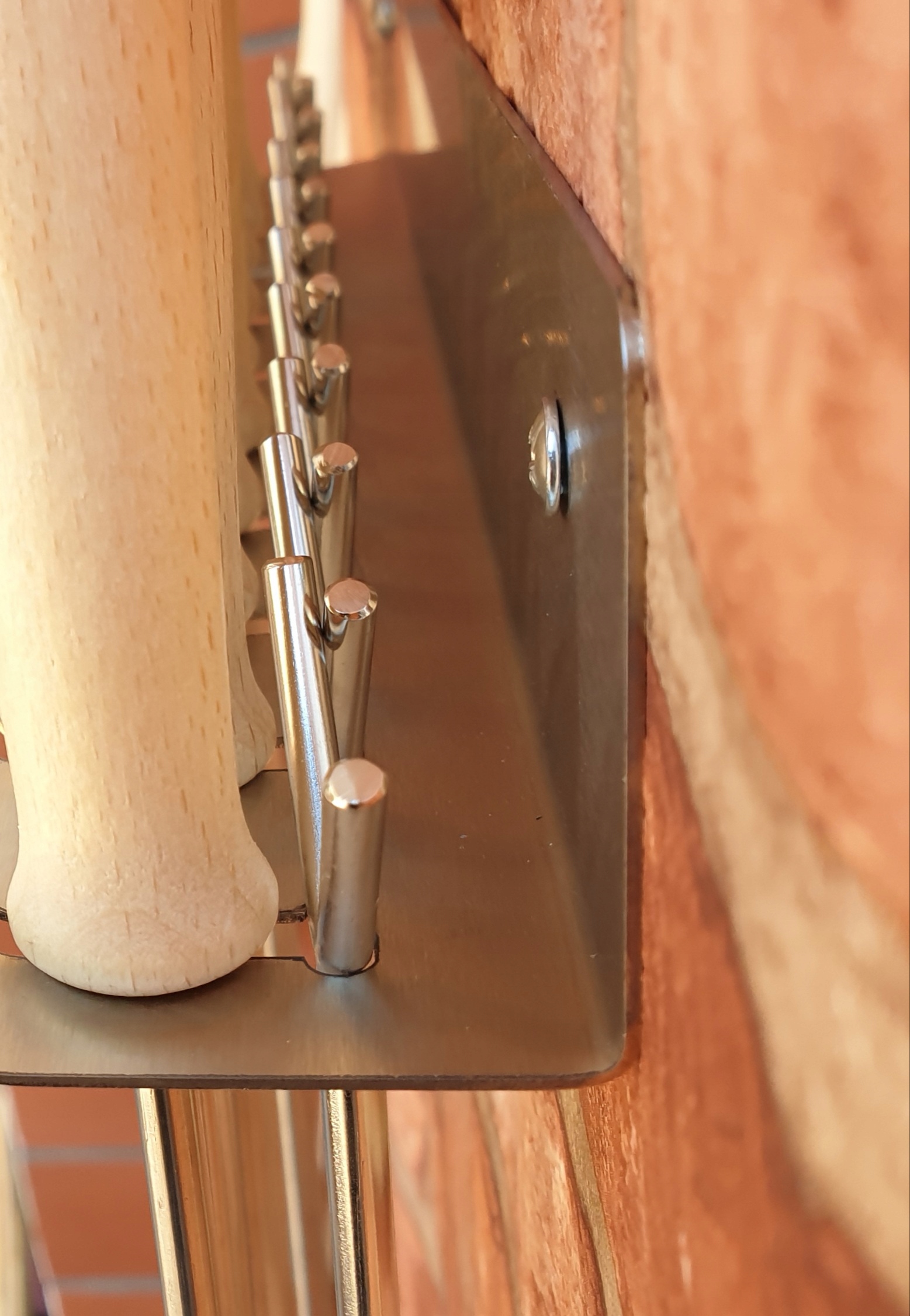 На інших аукціонах ми пропонуємо набір опор з нержавіючої сталі довжиною 85 см, які можна повісити на ту ж вішалку, просто за дерев'яну ручку, глибоко в спеціально вирізаний отвір.
