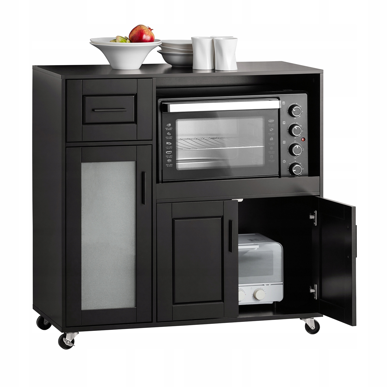 Цю елегантну шафу для зберігання було обрано з елегантним чорним покриттям і двома скляними дверцятами. Комод ідеально підходить для ресторанів, домашніх кухонь та інших місць. Небагато місця, але ефективно наводить порядок у кімнаті.