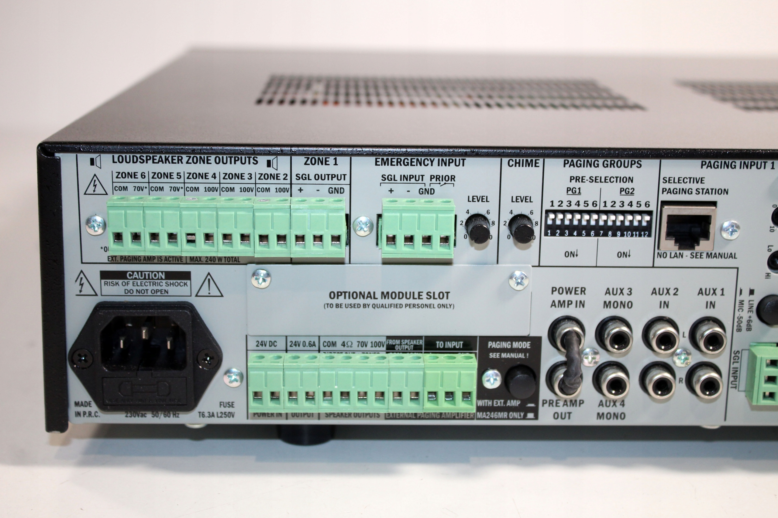 Звукова зона №1 підтримується повністю незалежним підсилювачем і дозволяє інсталятору використовувати додатковий зовнішній підсилювач для його використання. Це особливо зручне рішення на великих поверхнях, де слід встановити багато динаміків, наприклад, виробничі залі. Можливість використання зовнішнього підсилювача в одній із зон значно збільшує універсальність системи на базі MA246.
