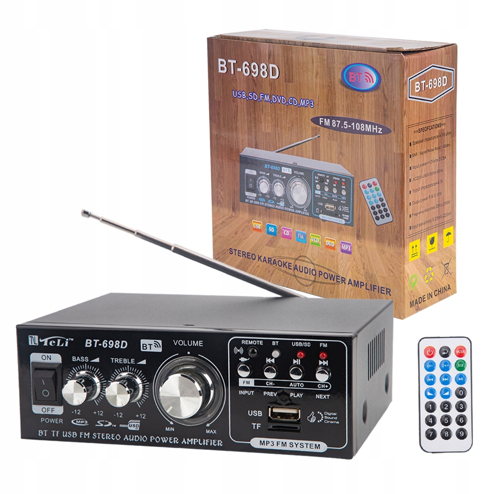 Просматривая «WZMACNIACZ STEREO KOLUMN GŁOŚNIKÓW BT-698D BLUETOOTH+PILOT», вы можете быть уверены, что данный товар из каталога «Усилители» будет доставлен из Польши и проверен на целостность. В цене товара, указанной на сайте, учтена доставка из Польши. Внимание!!! Товары для Евросоюза, согласно законодательству стран Евросоюза, могут отличаться упаковкой или наполнением.