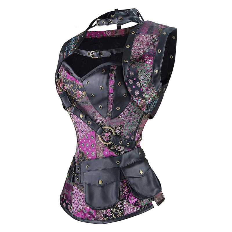 Wzorzysty gorset ze zdobieniami odpinany dekolt ze stringami
