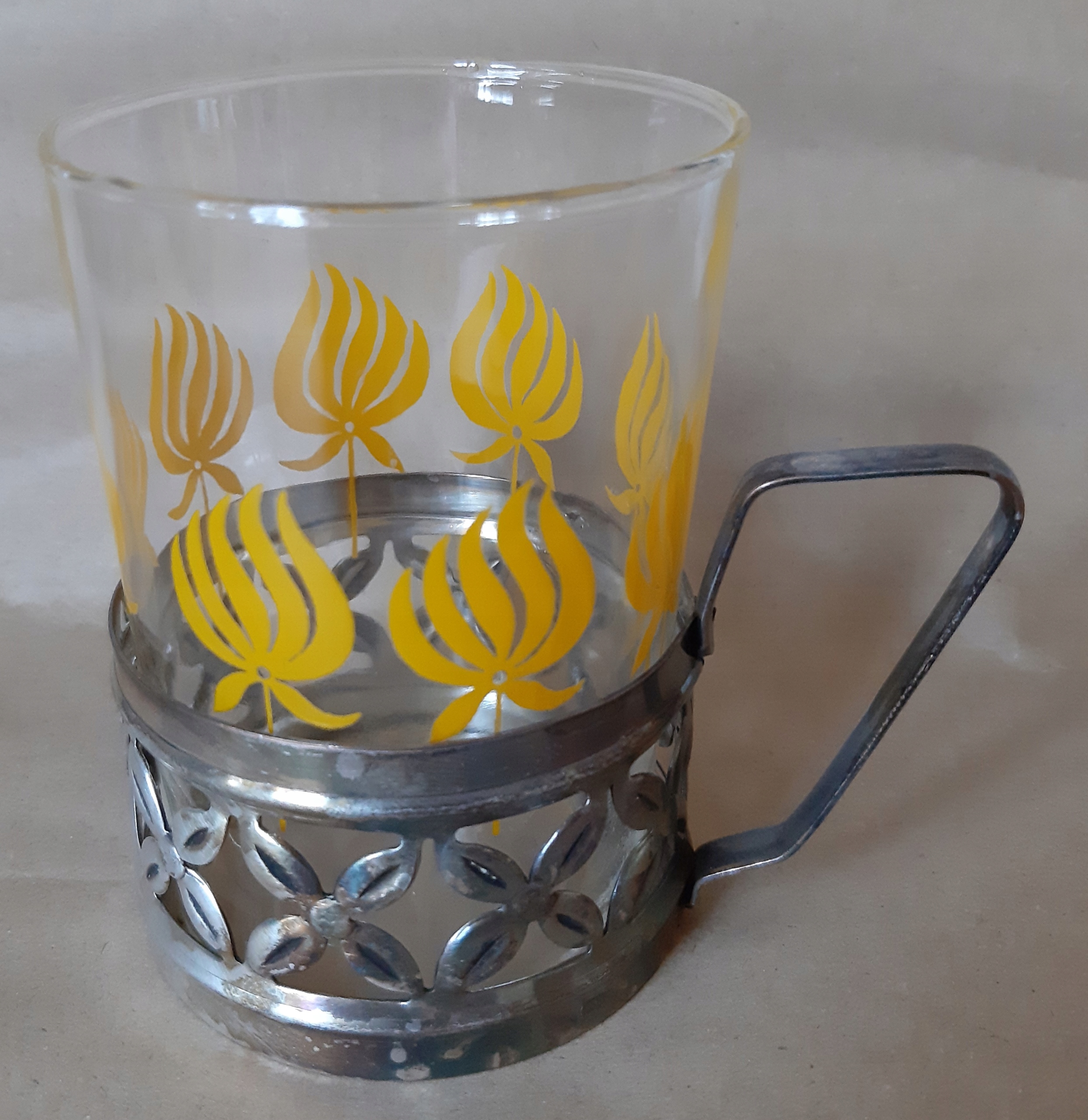 x 6 СКЛЯНІ скляні квіти X 6 КОШИК металевий сувенір Польської Народної Республіки / куб.