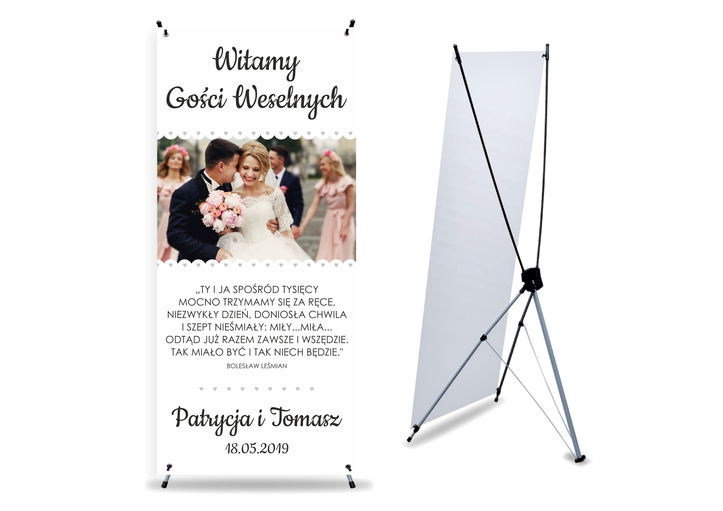 Економічний X-баннер розміром 60х160 смз відбитком зустрічі гостей весілля в одному з наступних дизайнів.