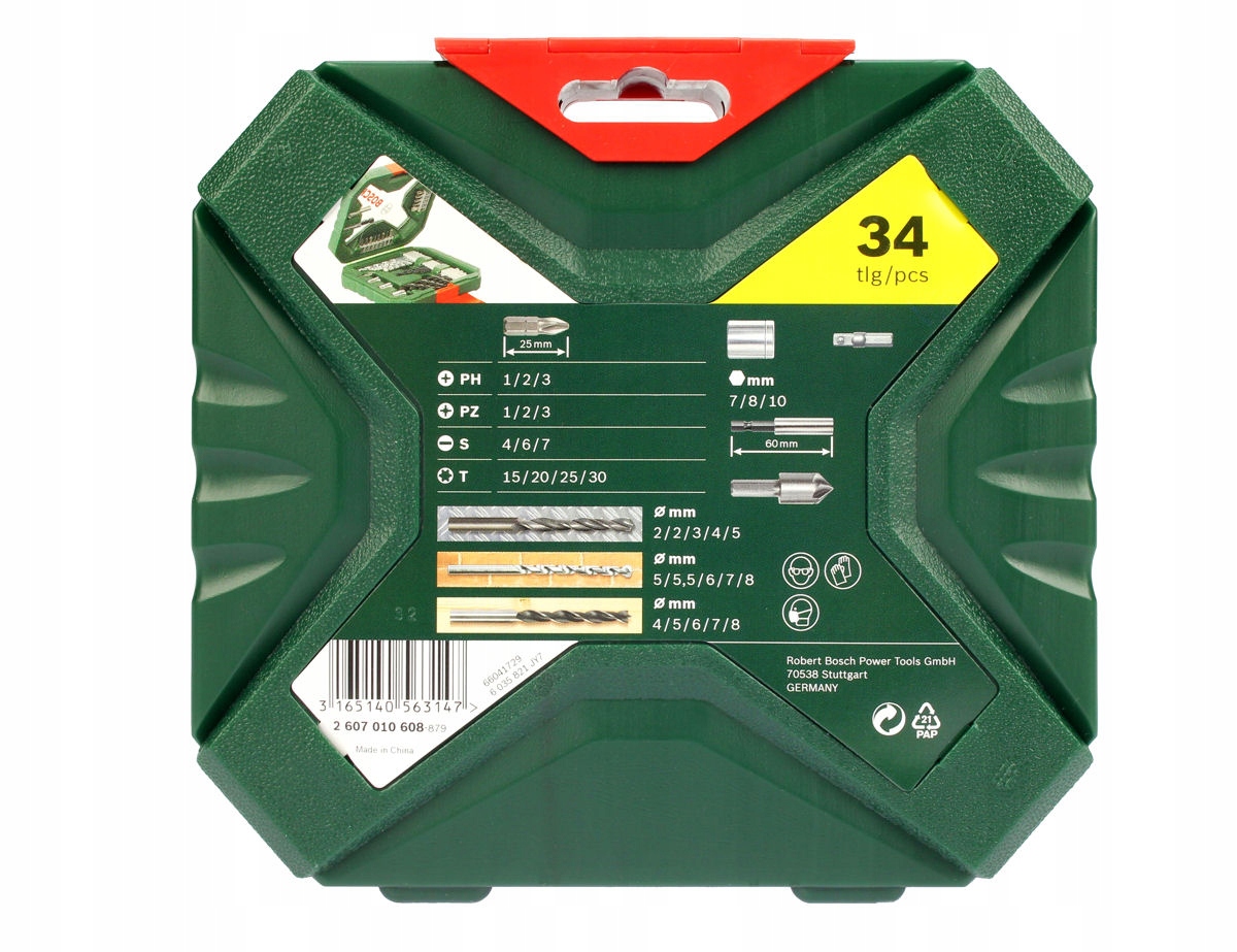 Набір X-LINE II від BOSCH з 34 предметів у спеціальному пластиковому кейсі.