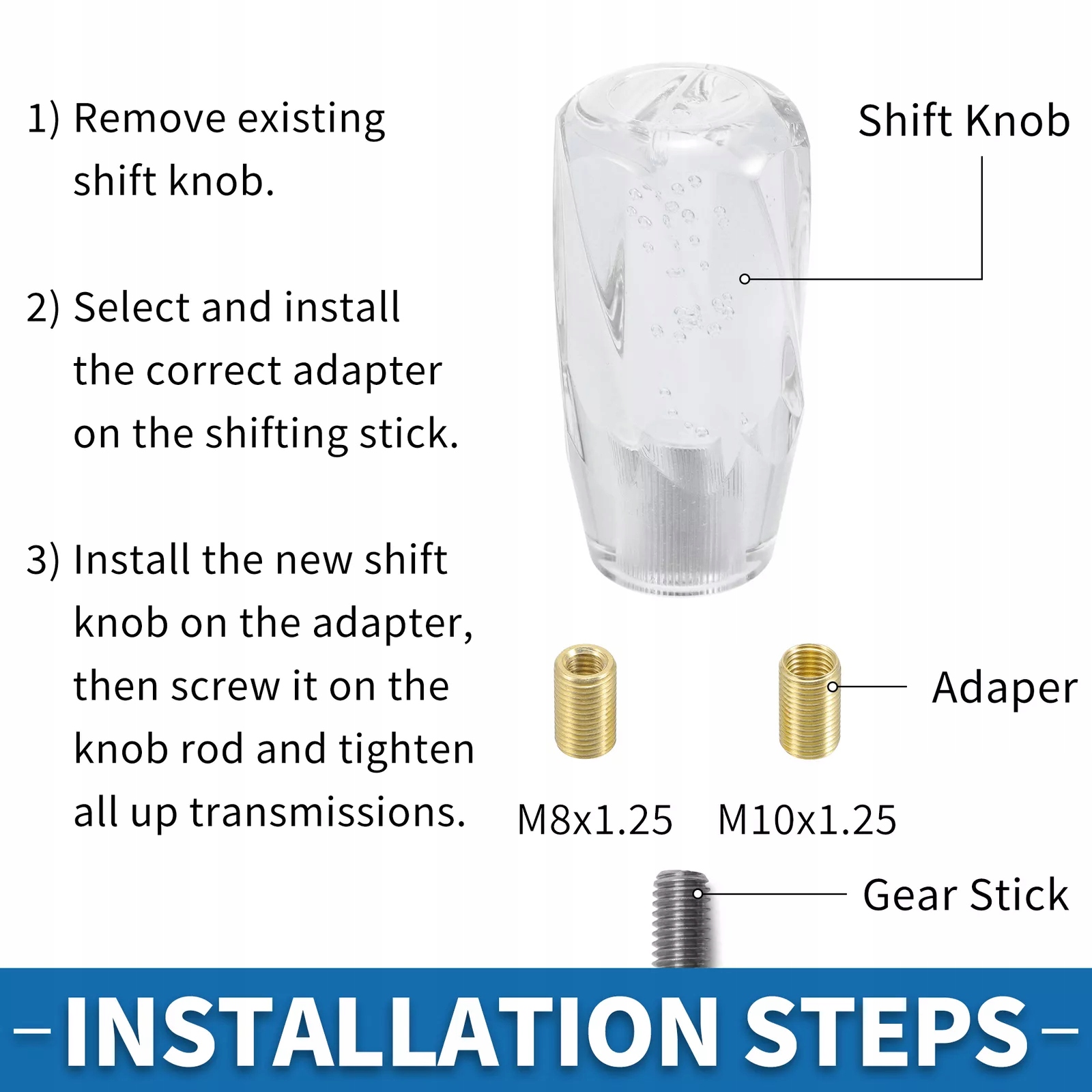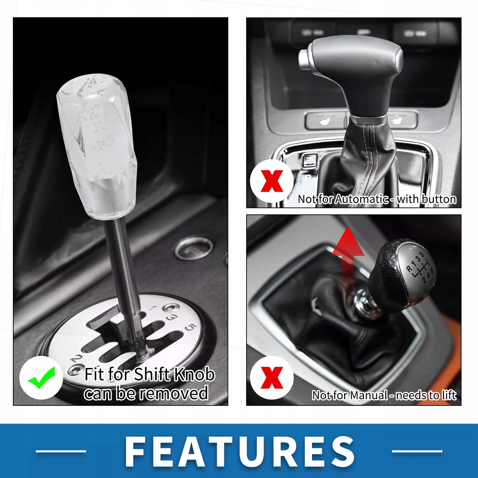 - Просте встановлення, просто зніміть наявну ручку перемикання передач, виберіть відповідний розмір адаптера та вставте новий важіль перемикання передач.