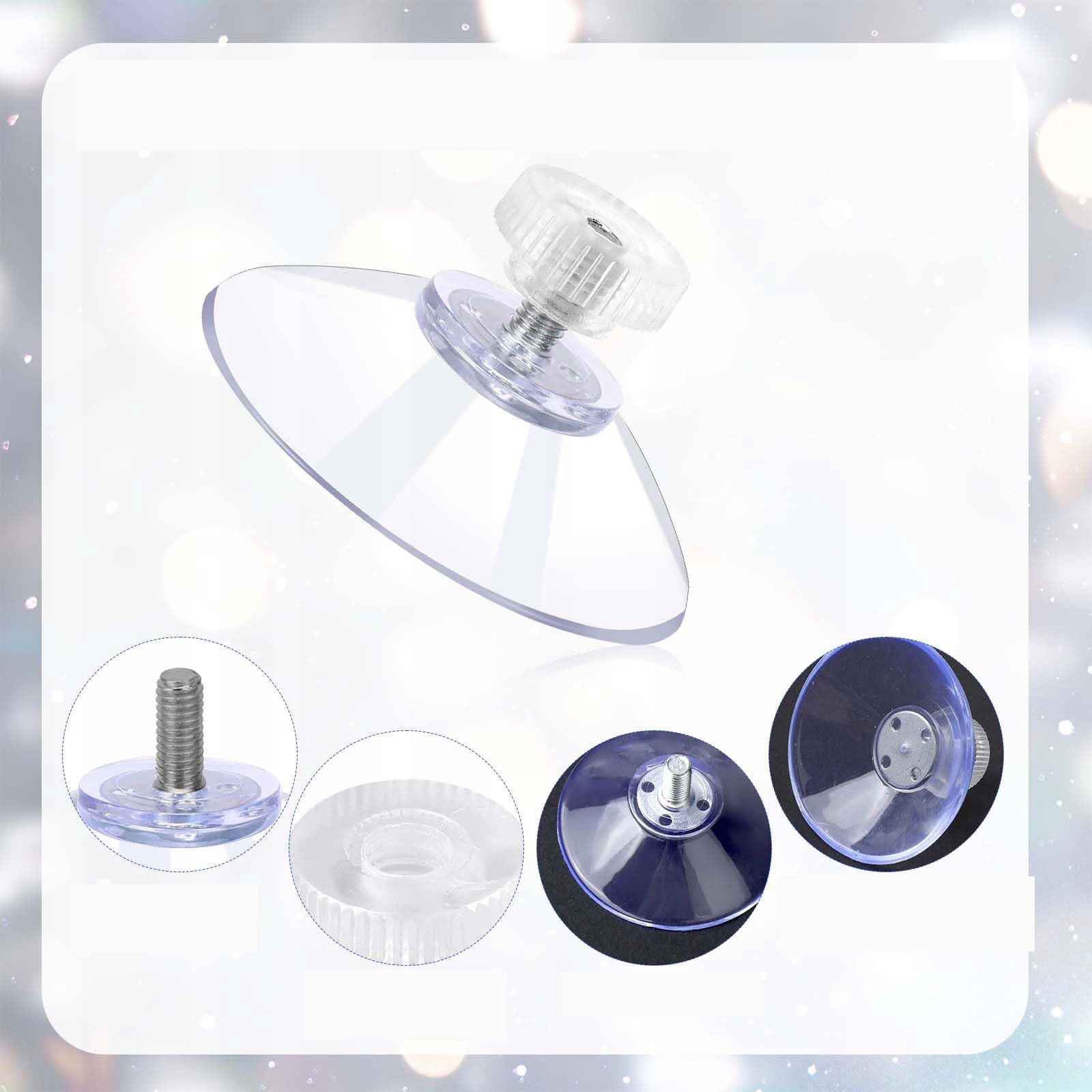 вміст упаковки: 10 штук присосних чашок з прозорими пластиковими гвинтами. Діаметр присоски - 40 мм/1,57 дюйма, його можна міцно прикріпити завдяки барометричному тиску. Розмір гвинтів M4, які можуть задовольнити ваші різні потреби, пов’язані із заміною, ви також можете поділитися ними як практичним подарунком для вашого друга чи родини.