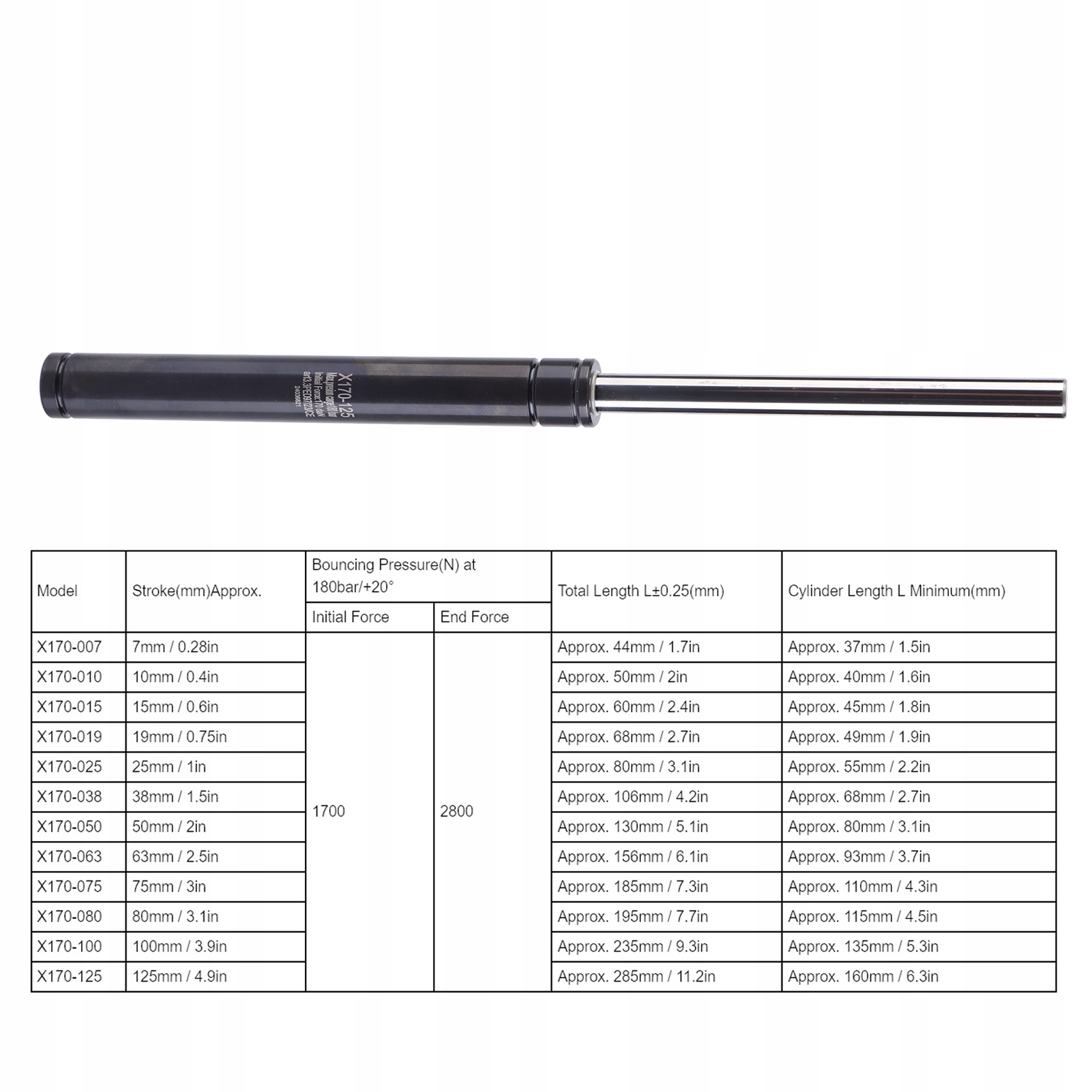 Діаметр циліндр: прибл. 19 мм / 0,7 дюйма Діаметр поршня: приблизно 11 мм / 0,4 дюйма