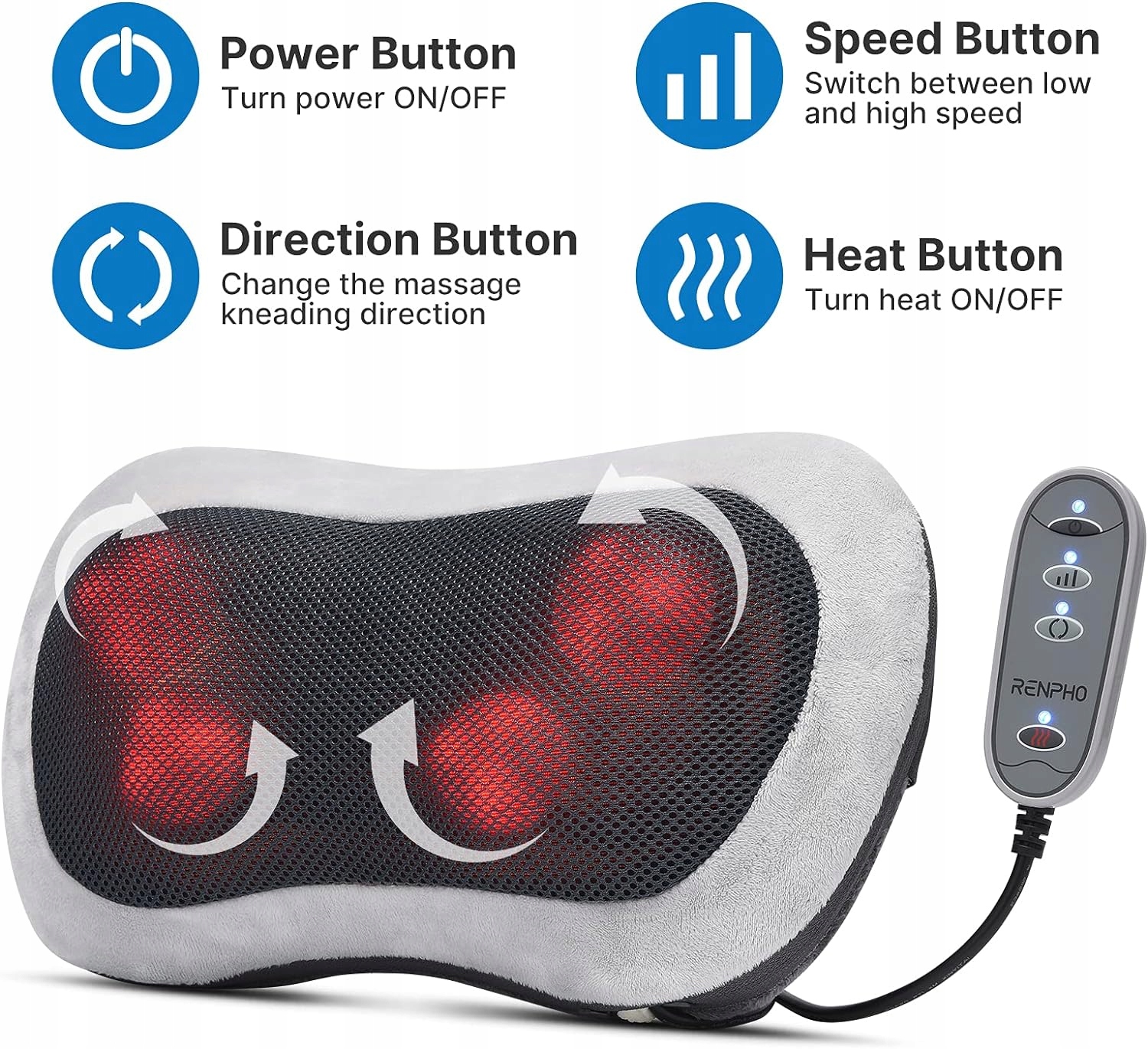 RENPHO Масажна подушка з функцією підігріву (сіра x 2)