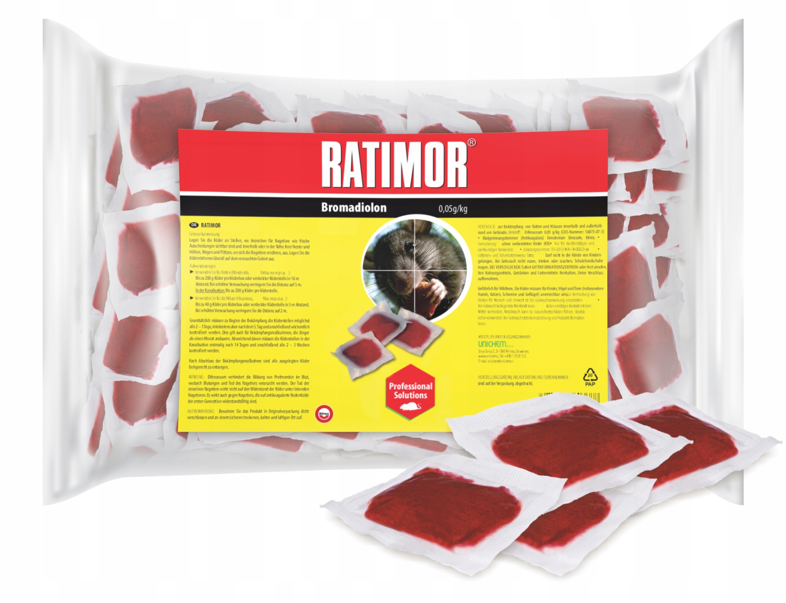 Окрім високої ефективності, продукт RATIMOR також характеризується тим, що він не викликає ефекту підозриу гризунів.