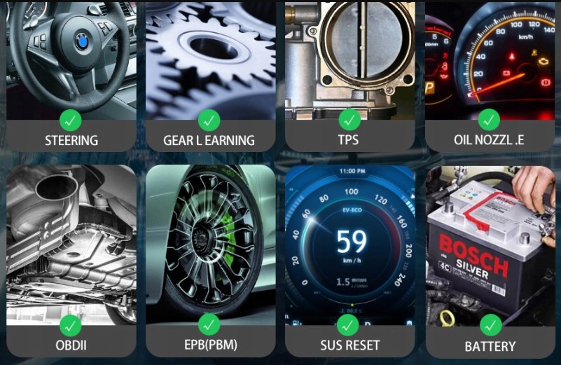 Скидання мастила / TPS / EPB / ABS / батарея / кут повороту / DPF / адаптація коробки передач / кодування інжектора / скидання підвіски для брендів: