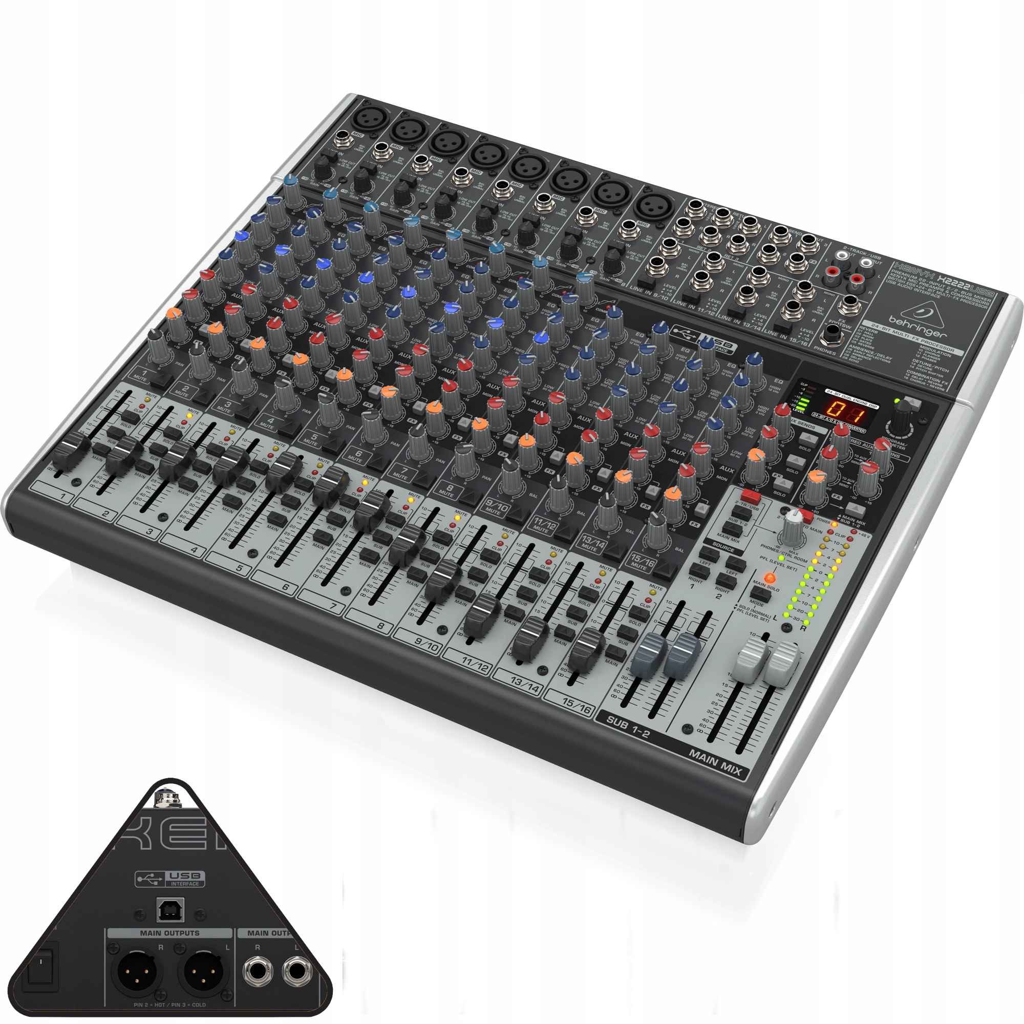 Бехрінгер Xenyx x22222USB -22-канальний змішувач із підгрупами 2/2, підграми ксенікса мікрофона, компресорами, класичним "британським" корекцією, 24-бітним процесором ефекту та USB-аудіо інтерфейсом. Analog8 Сучасні підсилювачі мікрофона Xenyx з Phantom. Процесор ефекту якості вивчення з 16 редагувальними пресетами, включаючи: реверберація, хор, флангер, затримка, перемикач кроку, багатосекунд, функції натискання з можливістю запам'ятовування налаштувань користувача. Під час запису, редагування та подкастів, а також 150 інструментів/вилки ефектів та низькорічних контролерів для завантаження з Бехрінгера