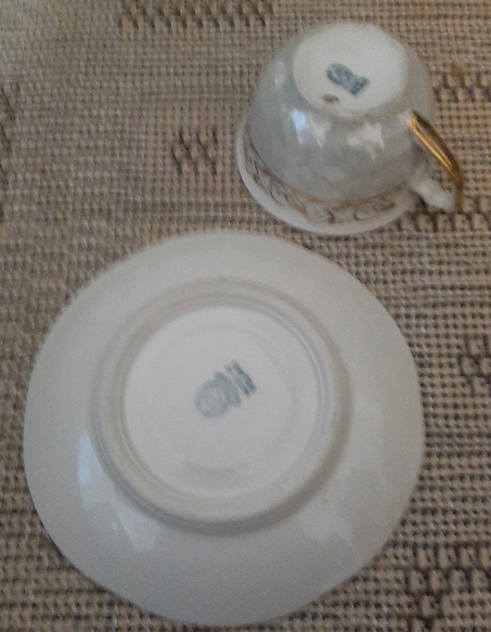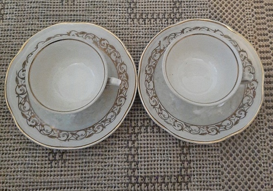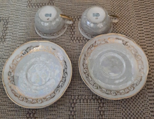 X4 filiżanka x2 TALERZYK beżowo złote mieniące się pamiątka PRL CHODZIEŻ aa