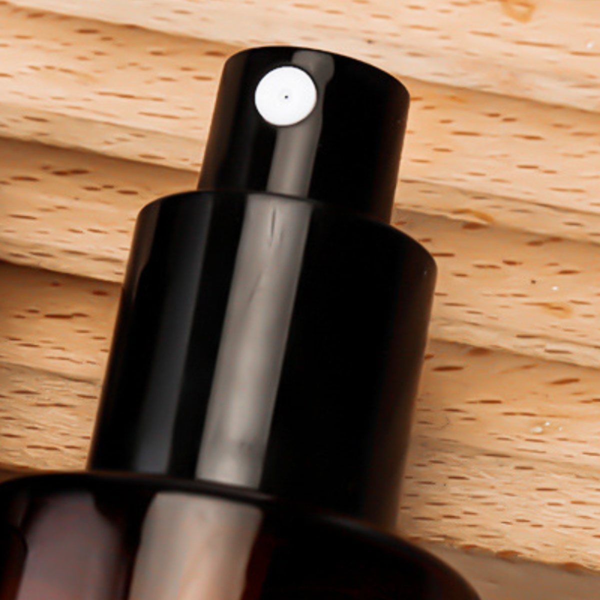 Практична і стильна коричнева скляна пляшка ємністю 100 мл, оснащена зручним чорним спреєм-розпилювачем. Ідеально підходить для зберігання духів, гідролатів, ароматичних туманів, олій, тоніків або побутової хімії.