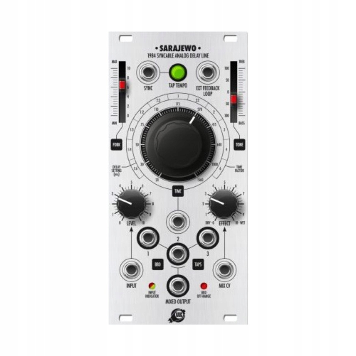 Затримка базується на приблизно трьох мікросхемах BBD із 4096 кроками, що забезпечує широкий діапазон затримки. Він синхронізується із зовнішнім годинником, або ви можете подвоїти темп вручну. Якщо ви шукаєте універсальний і потужний модуль затримки з чудовим звучанням, тоді шукайте SARAJEWO.