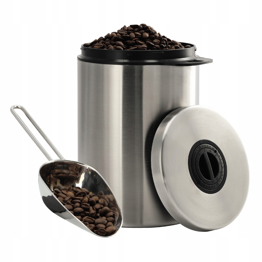 Банка з нержавіючої сталі для зберігання до одного кілограма цілих кавових зерен.