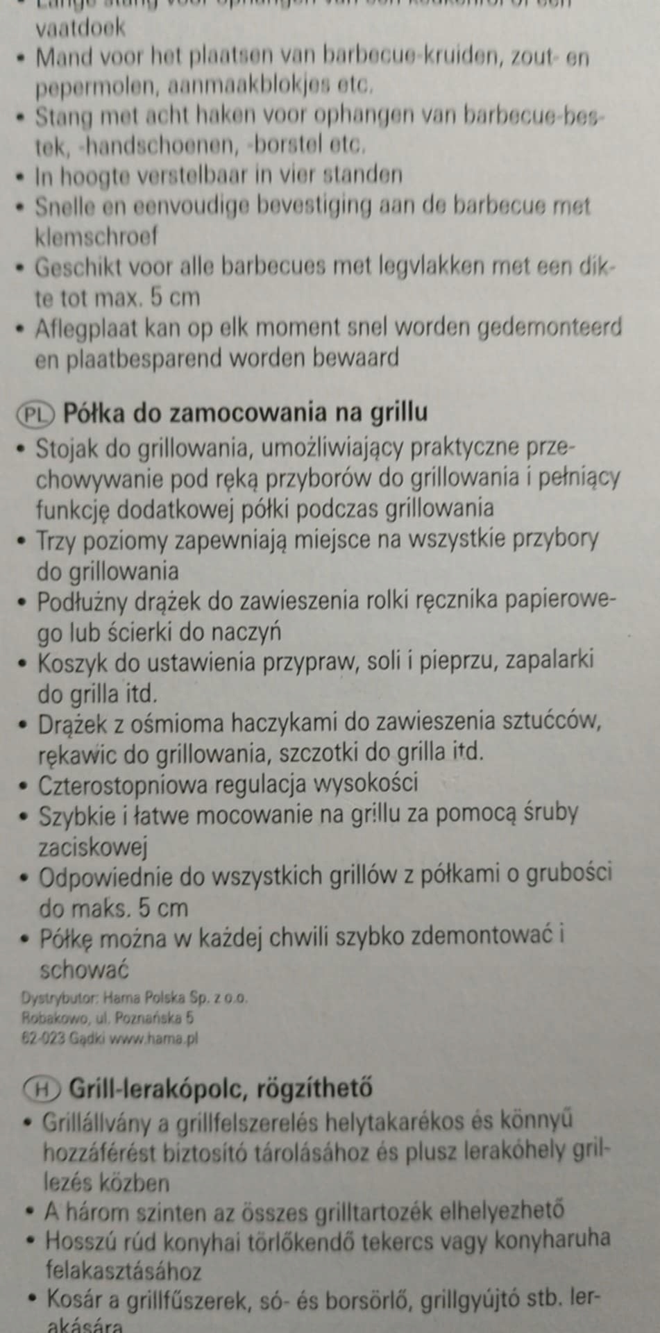 - Підходить для всіх грилів із полицями до макс. товщиною 5 см