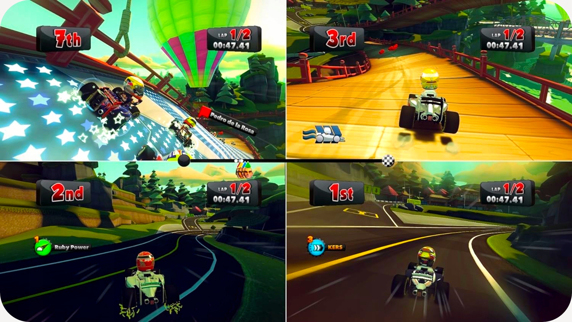 У грі F1 RACE STARS на XBOX 360 вас чекає захоплююча поїздка в мультяшному стилі, де боліди Формули-1 перетворюються на барвисті божевільні транспортні засоби. Завдяки унікальним навичкам персонажа, таким як телепортація або стрільба зі зброї, ігровий процес набуває нового виміру. Динамічні маршрути, повні пасток і скорочень, зроблять кожну гоночну пригоду незабутньою. Система посилення дозволить отримати перевагу над супротивниками, а багатокористувацький режим подарує безліч захоплюючих випробувань. F1 RACE STARS — це поєднання швидкості, дії та веселощів, яке захопить вас годинами!