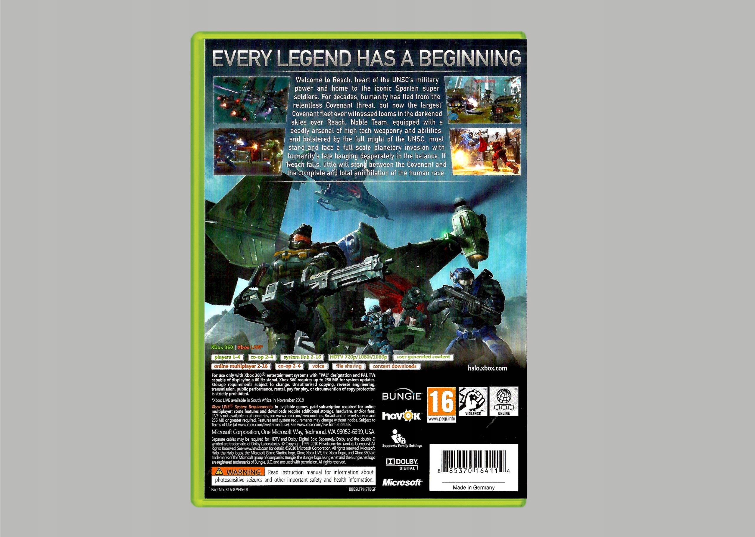 Ласкаво просимо у світ Halo Reach на XBOX 360 — епічного бойовика, який перенесе вас у неймовірну подорож космосом, сповнену емоцій і незабутніх випробувань. Приготуйтеся до незабутніх битв, чудового сюжету та чудової графіки — Halo Reach — це гра, яку ви не можете пропустити!