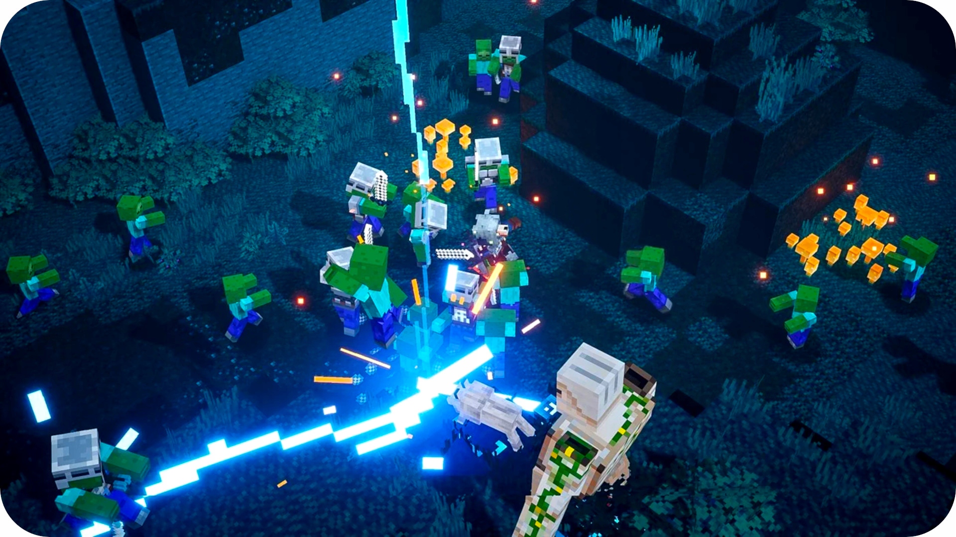 Minecraft Dungeons — це динамічний і захоплюючий бойовик, який пропонує надзвичайно захоплюючу бойову механіку, сповнену адреналіну. Гравець може досліджувати різні локації, перемагати натовпи ворогів і отримувати потужні предмети, які дозволяють розвивати персонажа. Система прогресування та навичок дозволяє створювати унікальні збірки, що ще більше збільшує глибину гри. Все це в поєднанні з плавним і чутливим керуванням робить Minecraft Dungeons справжньою насолодою для любителів бойовиків.