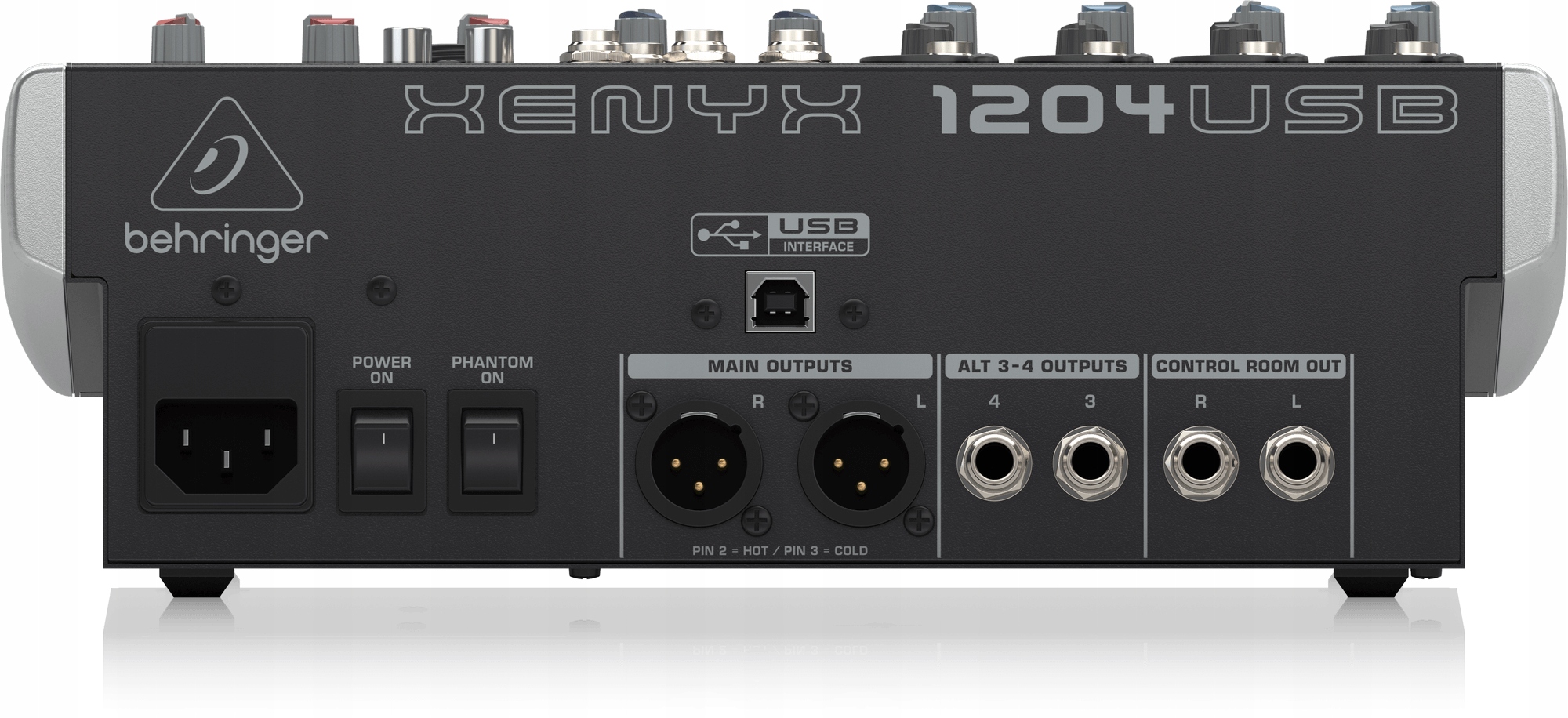 Behringer XENYX 1204USB – 12-канальний мікшер XENYX 1204USB з підгрупами 2/2, мікрофонними попередніми підсилювачами XENYX, компресорами, класичним «британським» еквалайзером і аудіоінтерфейсом USB.