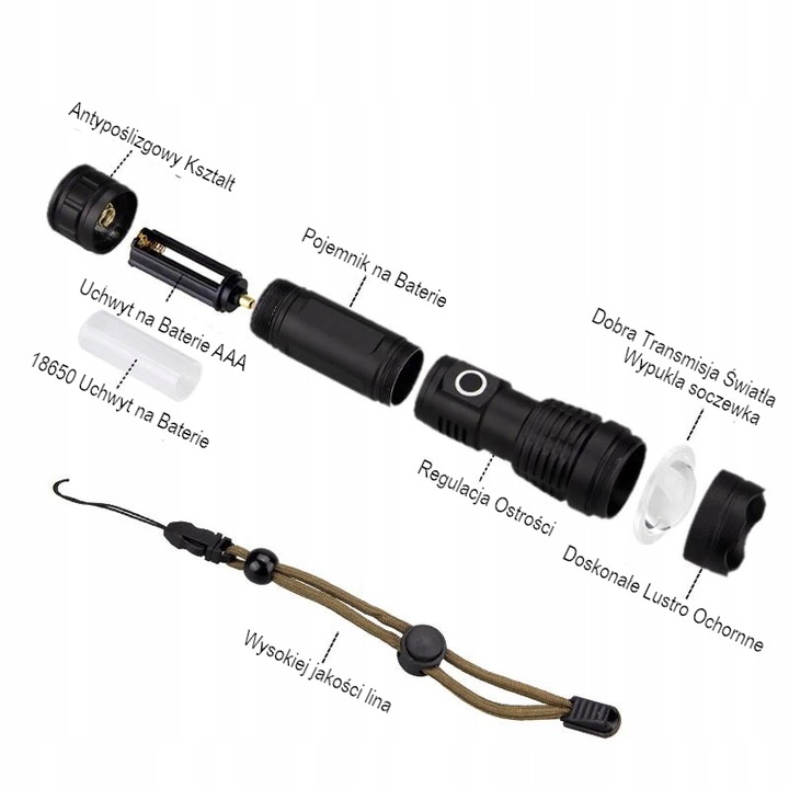 Завдяки використанню системи прокладок і дуже гарній підгонці елементів ліхтарик стійкий до сильного дощу, вологи та бруду. Ліхтарик оснащений найсучаснішим напівпровідниковим діодом XHP90. Це найсильніший діод, який може засліпити будь-кого.