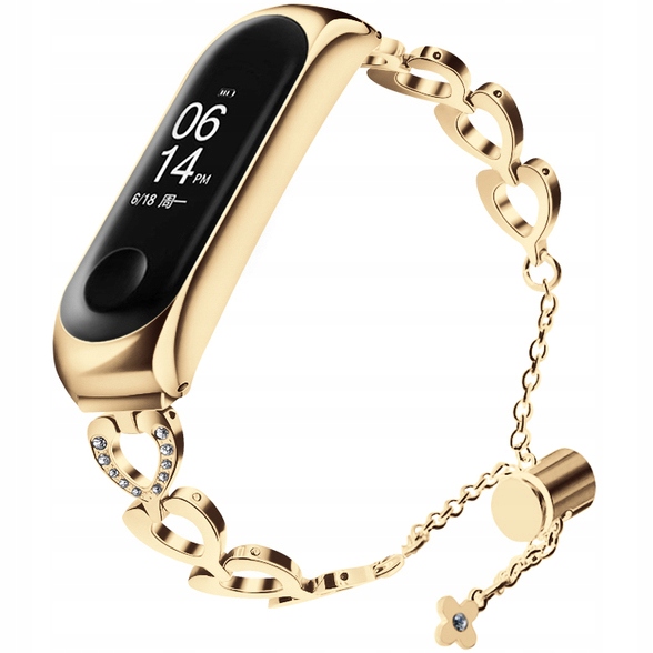 Змінний ремінець для XIAOMI MI Band3, Band4, Band5, Band6 Змінний браслет із нержавіючої сталі, декоративний візерунок у формі серця з імітацією діамантів