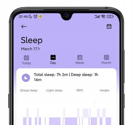 Smart Band записує тривалість і якість вашого сну. Розпізнає глибокий сон, легкий сон і швидкий сон на основі змін частоти серцевих скорочень і надає наукові поради, які допоможуть вам виробити звички регулярного здорового сну.