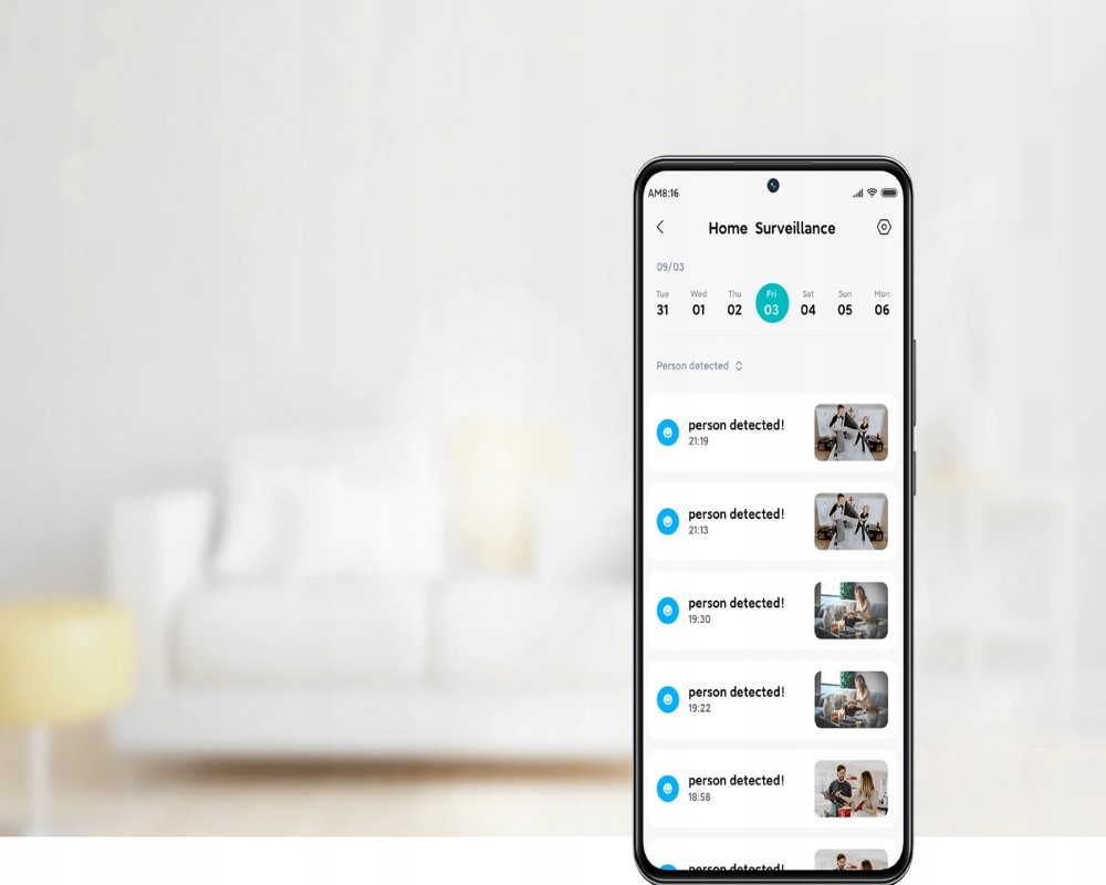 Всебічно контролюйте свої кімнати. Камера, оснащена механізмом двоосьового обертання з кутом огляду 360° по горизонталі та 106° по вертикалі забезпечить вам повне бачення того, що відбувається у вашому домі.